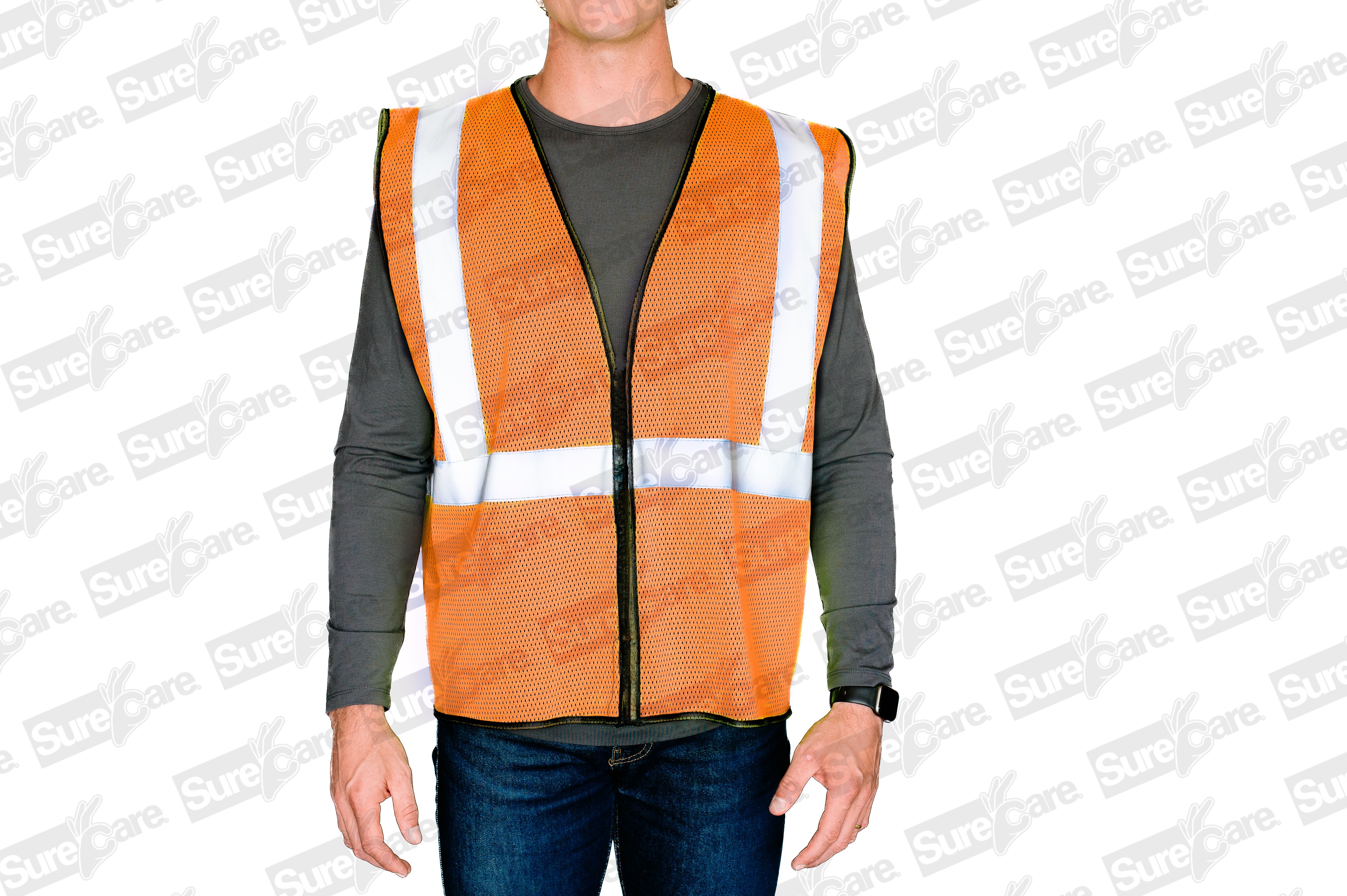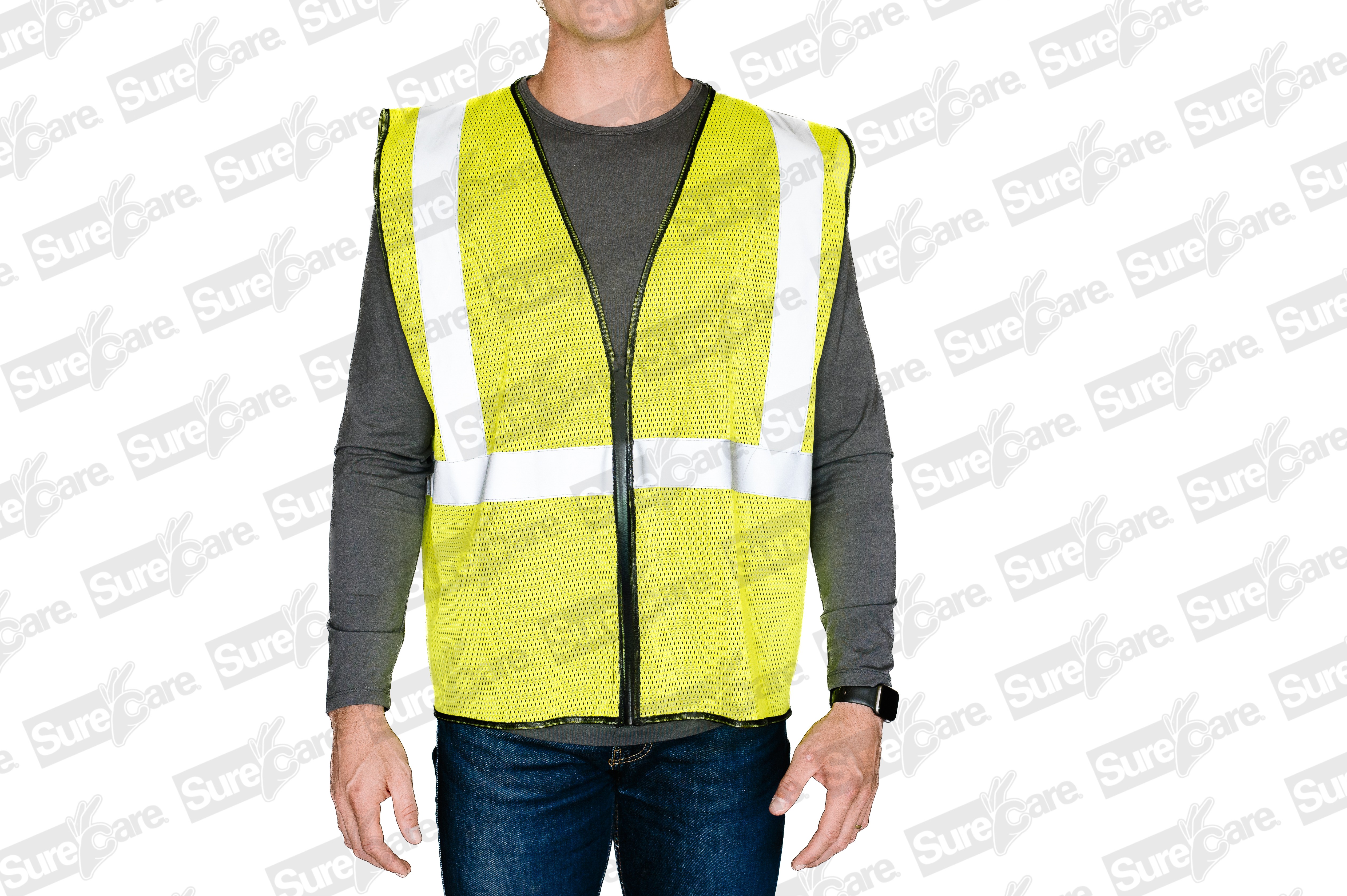 Surecare Velcro Vest, Polyester Mesh, 2″ Reflective, U Pattern